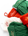 Geef de feestdagen een persoonlijk tintje met onze gebreide kerstsokken met je naam erop geborduurd. Gemaakt van heerlijk zacht garen en met oog voor detail afgewerkt, zijn ze perfect om op te hangen bij de open haard, te vullen met cadeautjes of gewoon om je huis extra gezellig te maken. Een warm en persoonlijk accent voor de mooiste tijd van het jaar.