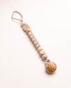 - Onze speenkoorden worden handgemaakt met een nylonkoord, siliconen kralen en houten bevestigingsclip.